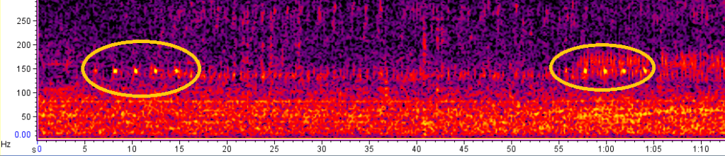 Listening conditions were difficult and only periodic booming could be detected either side of this during October, while no booming was detected in November.