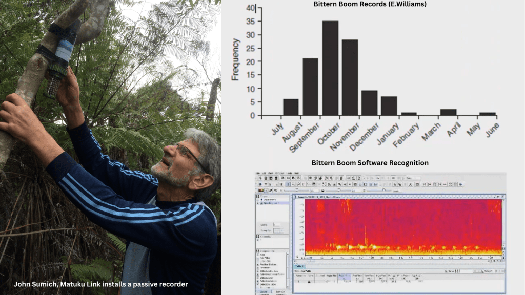 This involves placing autonomous recorders around the wetland, set to record when the male bittern is most likely to be heard during peak booming.